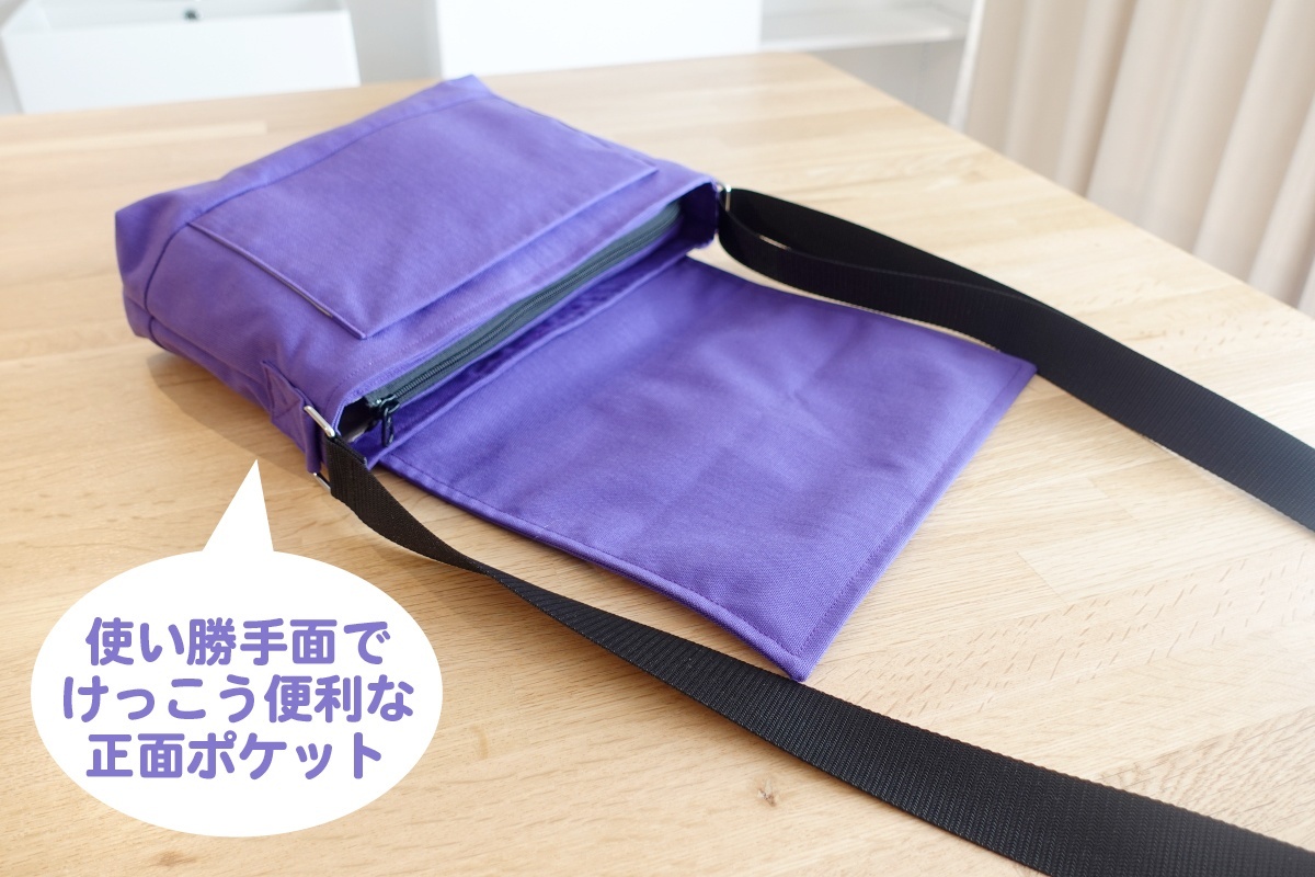 ・正面パッチポケット付きで、すぐに取り出したい小物の収納に便利。